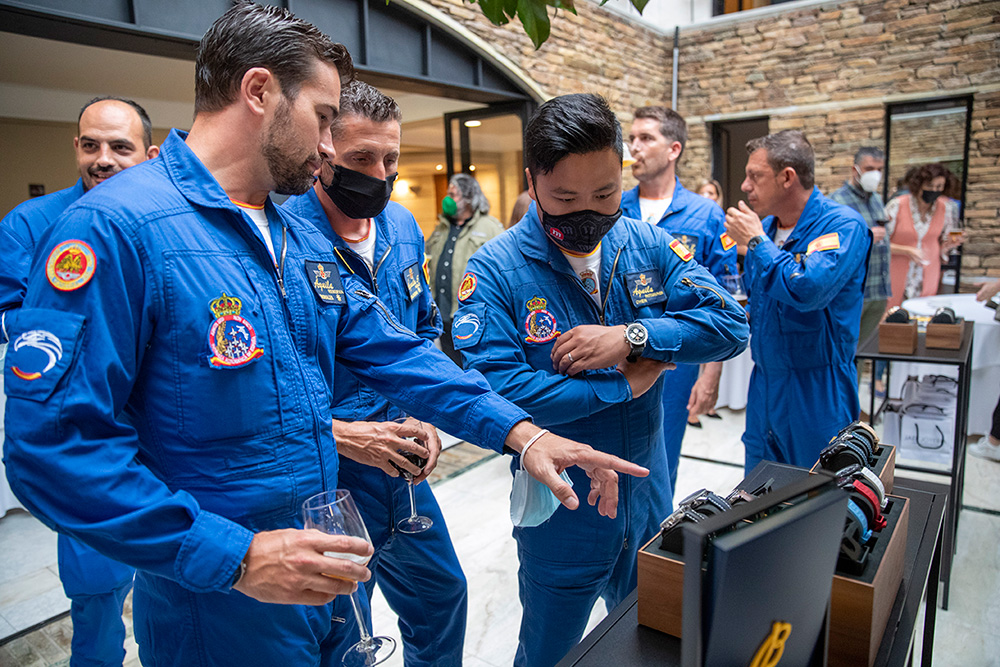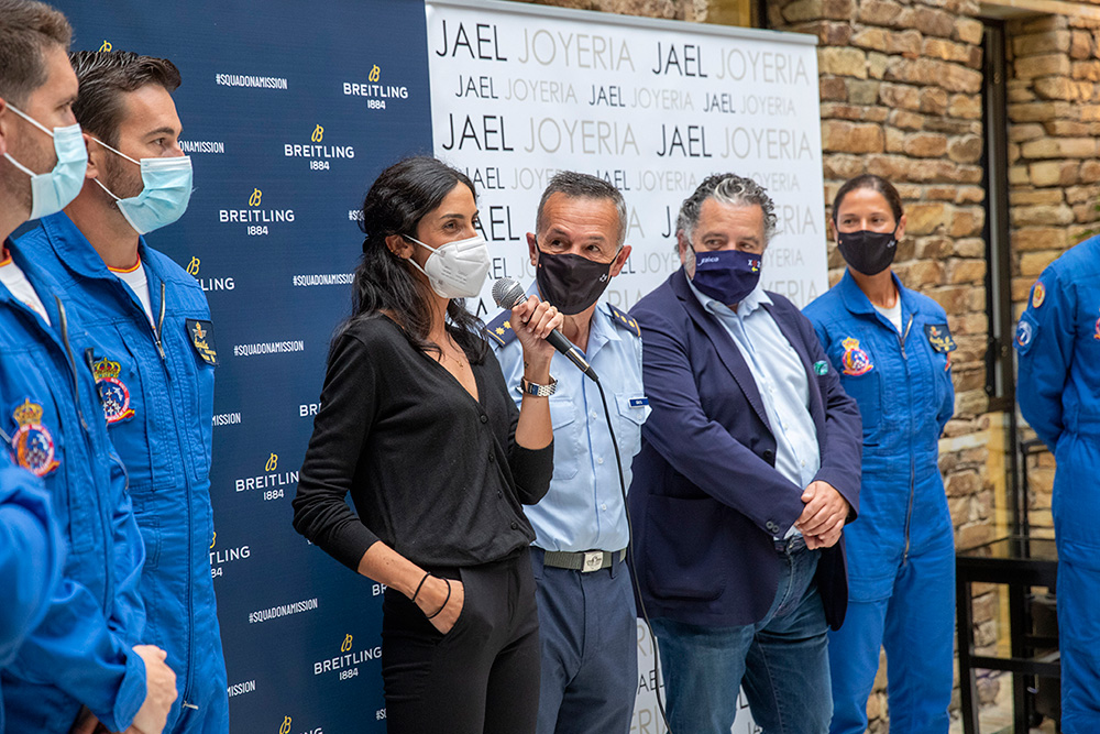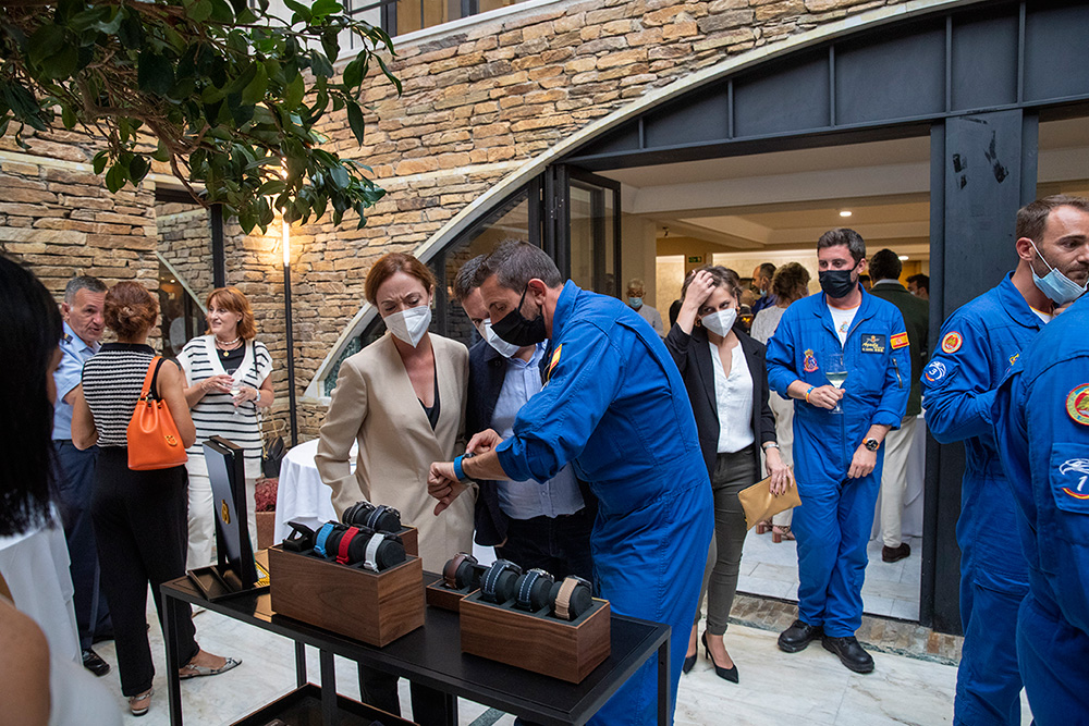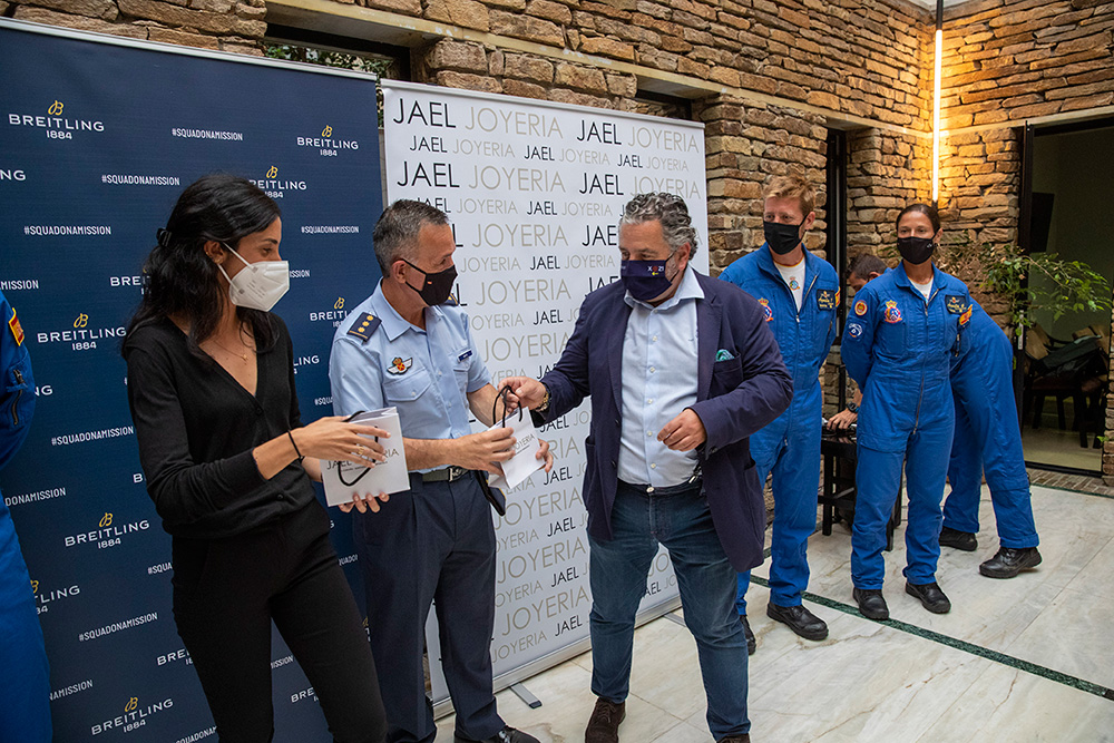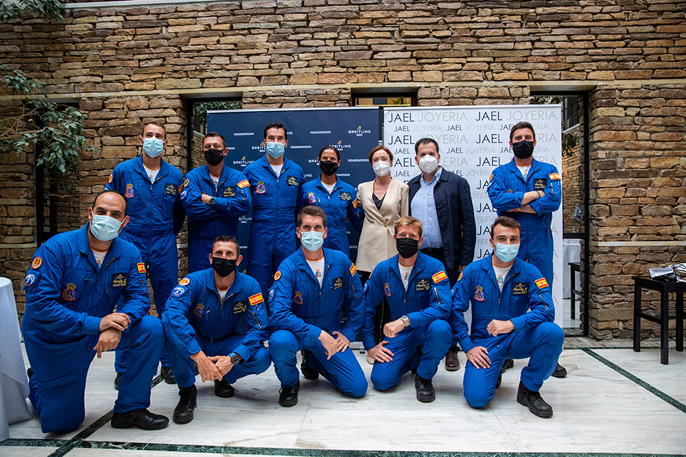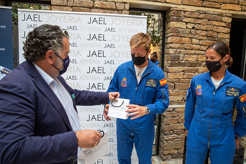 Al evento asistieron la totalidad de los pilotos de la patrulla, con el coronel Pedro Díaz al frente, así como Chema Fernández, director de Jael Joyería, y María Blanco, del departamento de Marketing de la marca relojera. Por parte de Jael Joyería estuvieron también presentes Tachi Fernández, de Santiago, y Tono Caravel, director en A Coruña.