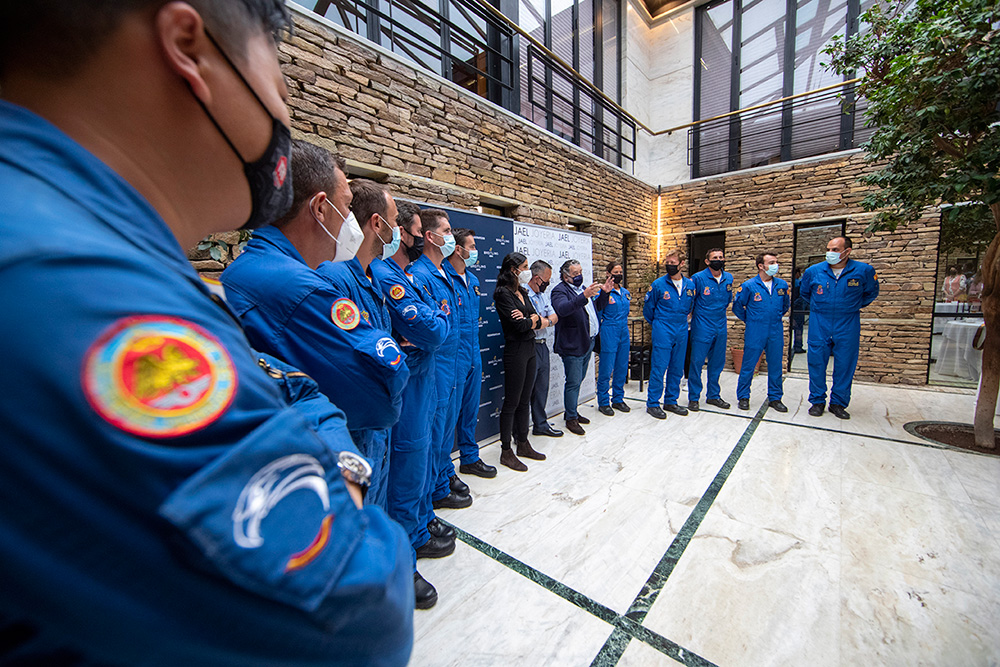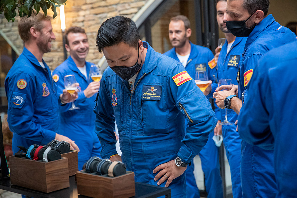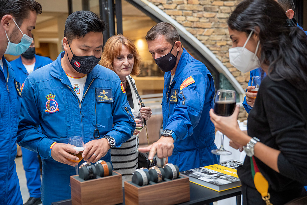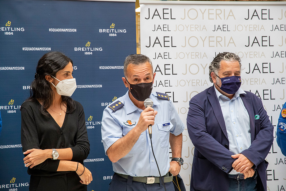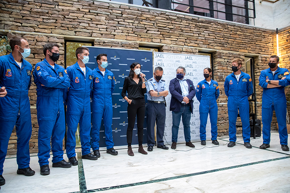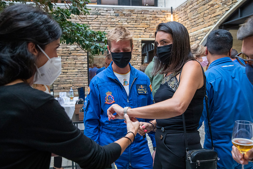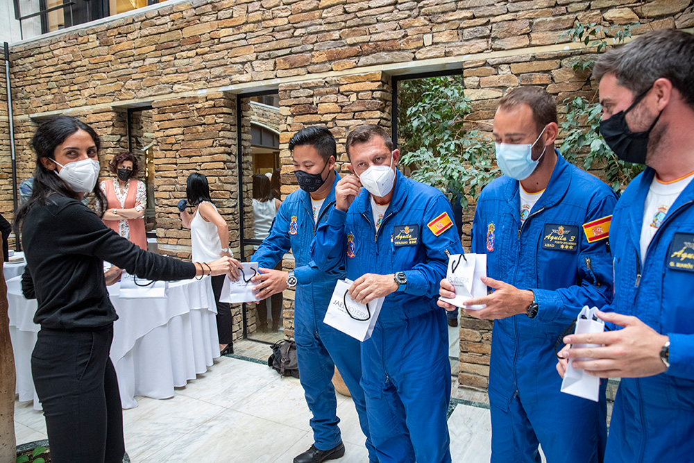 Al evento asistieron la totalidad de los pilotos de la patrulla, con el coronel Pedro Díaz al frente, así como Chema Fernández, director de Jael Joyería, y María Blanco, del departamento de Marketing de la marca relojera. Por parte de Jael Joyería estuvieron también presentes Tachi Fernández, de Santiago, y Tono Caravel, director en A Coruña.