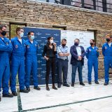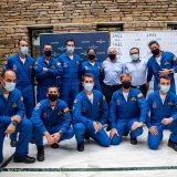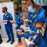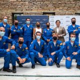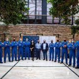 Integrantes de la Patrulla Águila del Ejército del Aire que sobrevolaron la Plaza del Obradoiro el domingo, 25 de julio, mantuvieron el día 23 un encuentro con aficionados a la aviación, convocados por Jael Joyería y Breitling, en el Real Aeroclub compostelano.