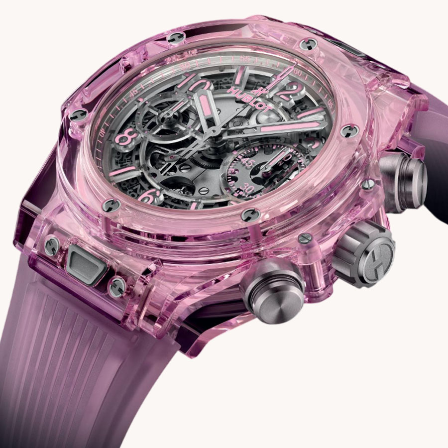 When developing its own automatic chronograph movement, Hublot wanted it to be, like all its creations, the first, different and unique. As the heart and soul of the watch, this ‘open-heart’ movement reveals its completely reinvented design. Its construction consists of 354 components that have been simplified to the maximum to improve its reliability and robustness.