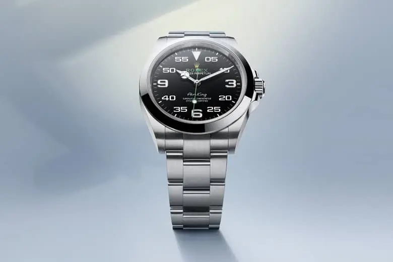 Como todos los relojes Rolex, el Air‑King cuenta con la certificación de Cronómetro Superlativo. Esta denominación atestigua que cada reloj que sale de los talleres de la marca ha superado con éxito una serie de pruebas llevadas a cabo por Rolex en sus laboratorios internos y con arreglo a sus propios criterios. El estatus de Cronómetro Superlativo se simboliza mediante el sello verde que incluyen todos los relojes Rolex y que va acompañado de una garantía internacional de cinco años.